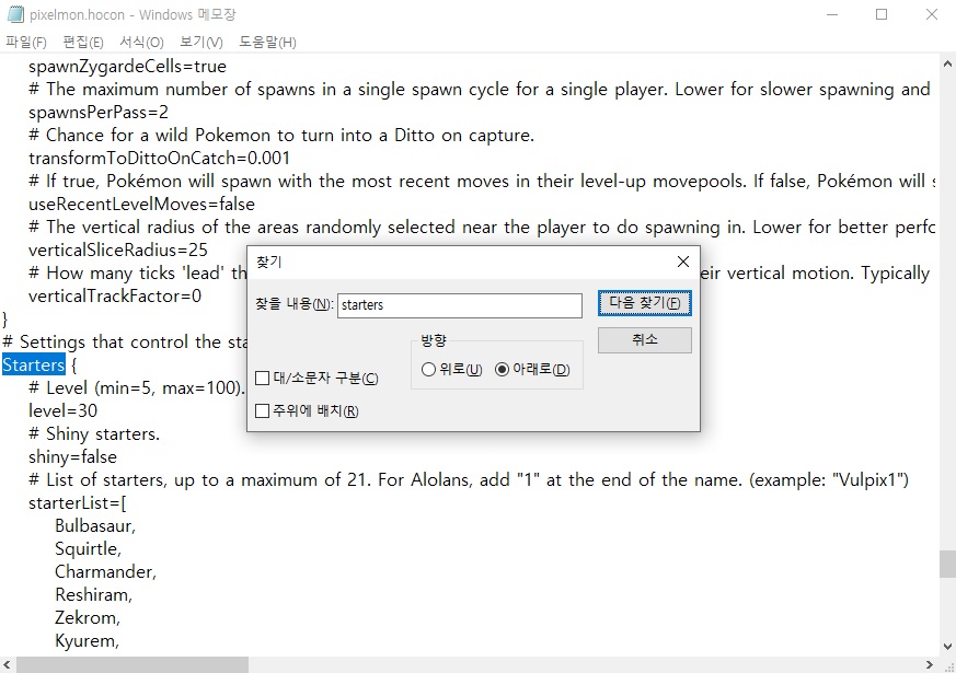 일단 픽셀몬 기본 설정을 바꾸려면 픽셀몬 설정 파일을 찾아야 합니다.