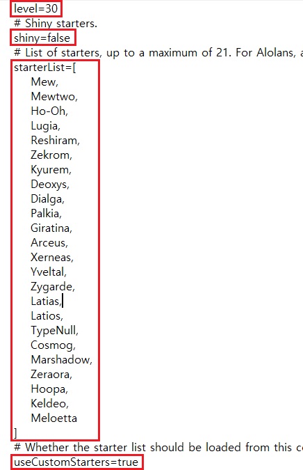 false를 true로 바꿔주시면 이로치 포켓몬으로 시작할 수 있습니다.