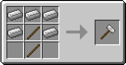 | 해머 |  | 철괴 위치에 금괴나 돌, 다이아 등 다른 재료를 넣어도 만들어집니다. 속도가 꽤 많이 차이가 나기 때문에 급하게 필요한 게 아니라면 철 이상의 해머를 준비해줍시다. |