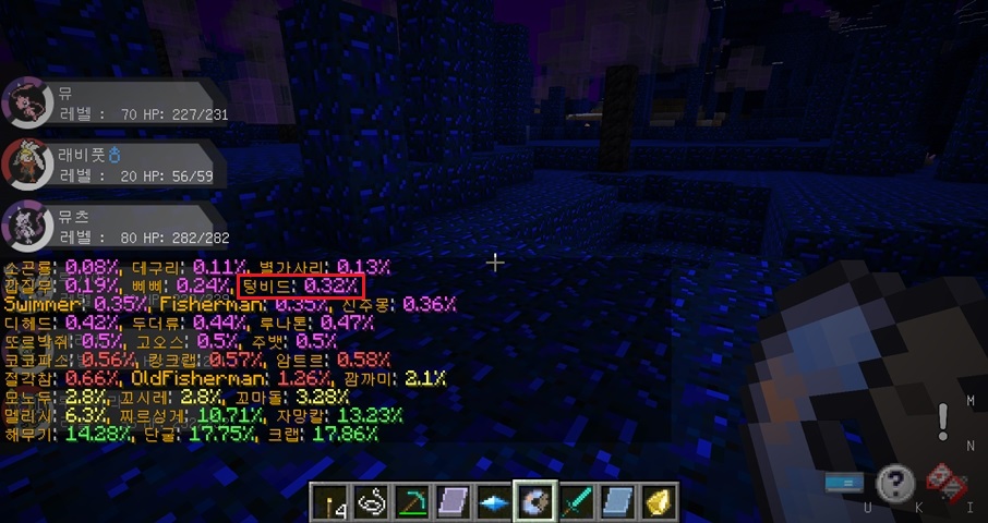 커맨드를 입력하면 위와 같이 컬러풀한 모습의 확률 목록이 나타납니다.