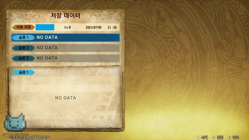 이렇게 비어있는 슬롯 1을 선택해주세요.