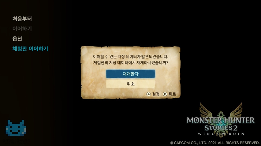 과감하게 종료하고 다시 몬스터헌터 스토리즈2 본편을 켜주세요.