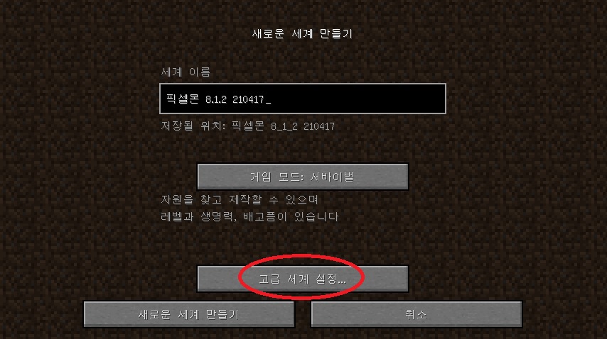 세계를 생성하기 전에 고급 세계 설정으로 들어가줍시다.